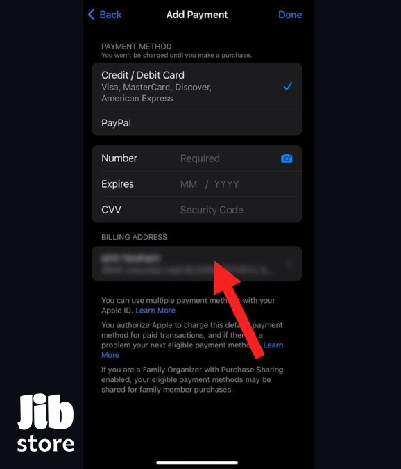 از وارد کردن آدرسهای جعلی یا نامعتبر پرهیز کنید. اپل ممکن است هنگام پرداختهای بعدی آدرس را تأیید کند.