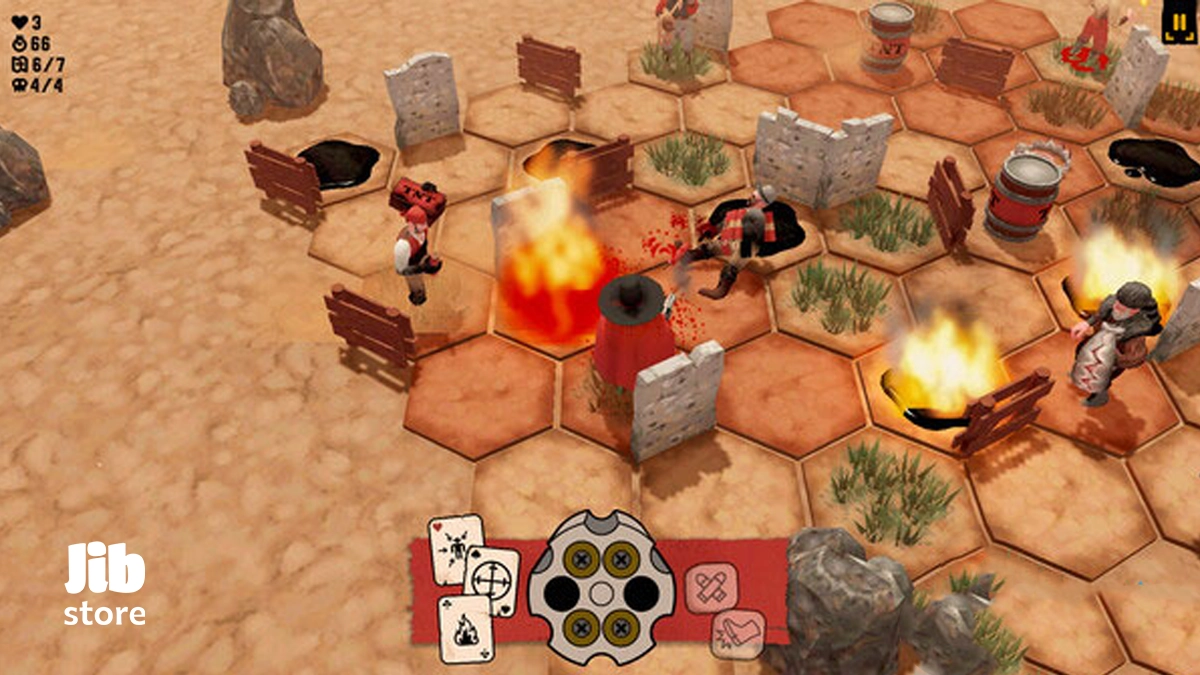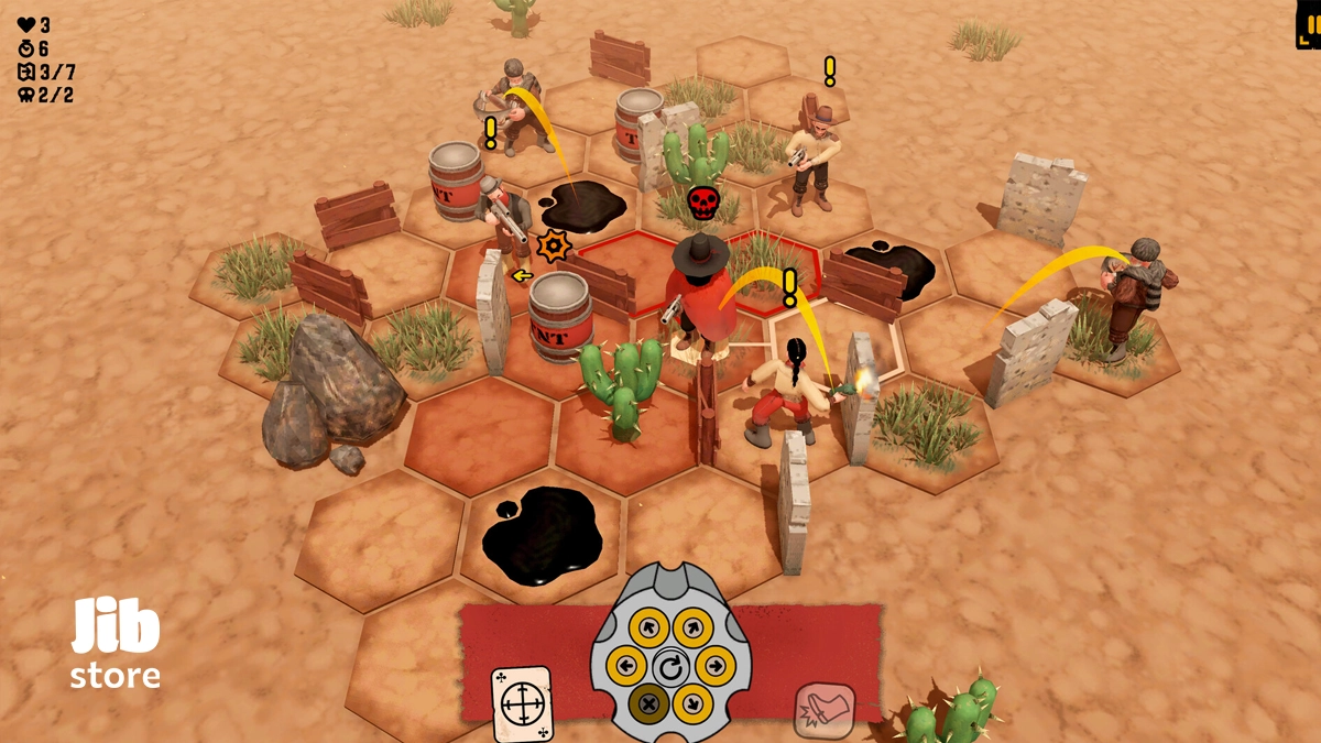 محیط فقط دکور نیست؛ یکی از مهمترین عناصر تاکتیکی بازی است. کاکتوسها، سنگها و بشکههای دینامیت همگی میتوانند تعیینکنندهی سرنوشت باشند. یک حرکت هوشمندانه مثل شلیک به بشکه دینامیت میتواند چند دشمن را همزمان از بین ببرد و معادلهی نبرد را تغییر دهد.