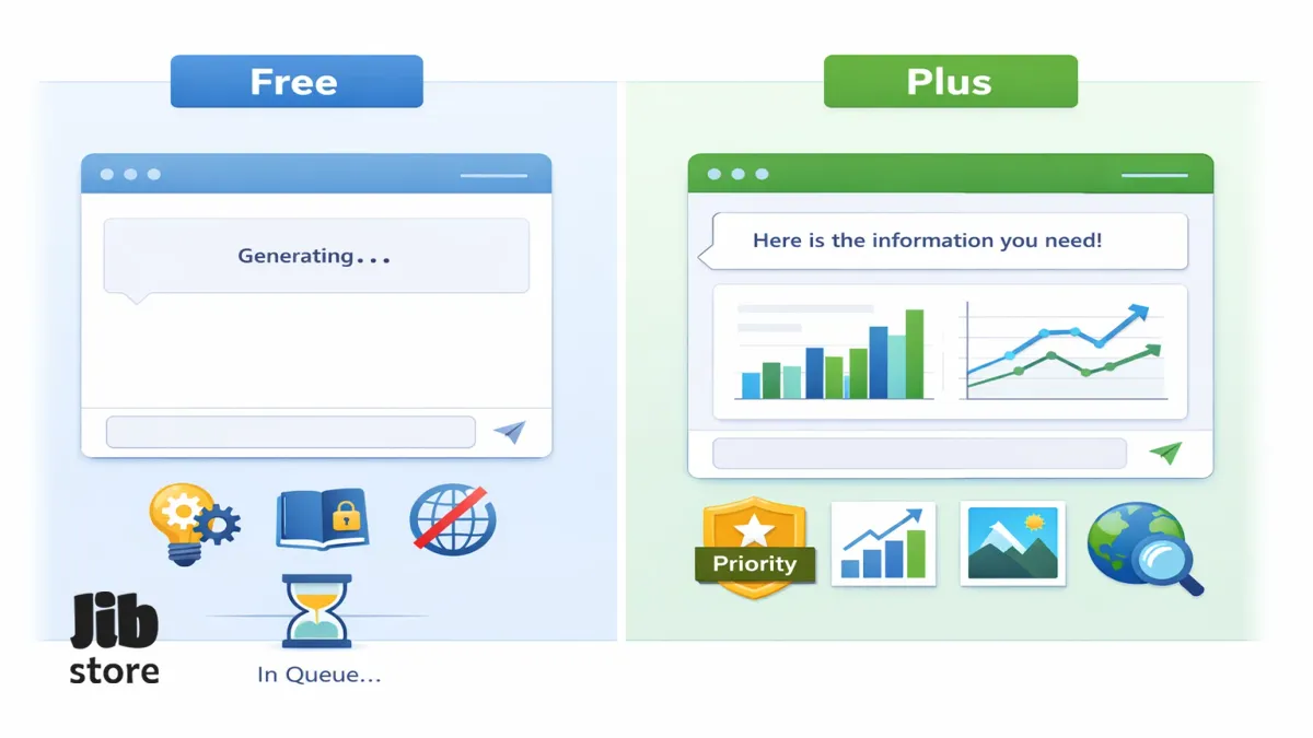 تصور کنید قصد دارید وارد یک فروشگاه بزرگ شوید. کاربران نسخهی رایگان مانند مشتریانی هستند که باید در صف عمومی بایستند. در ساعات خلوت، ورود راحت است؛ اما در ساعات شلوغی (Peak Hours)، ممکن است ساعتها پشت در بمانند یا اصلاً اجازهی ورود پیدا نکنند. در مقابل، کاربران پلاس دارای یک کارت ورود اختصاصی هستند. تفاوت اصلی در دو مورد زیر خلاصه میشود: