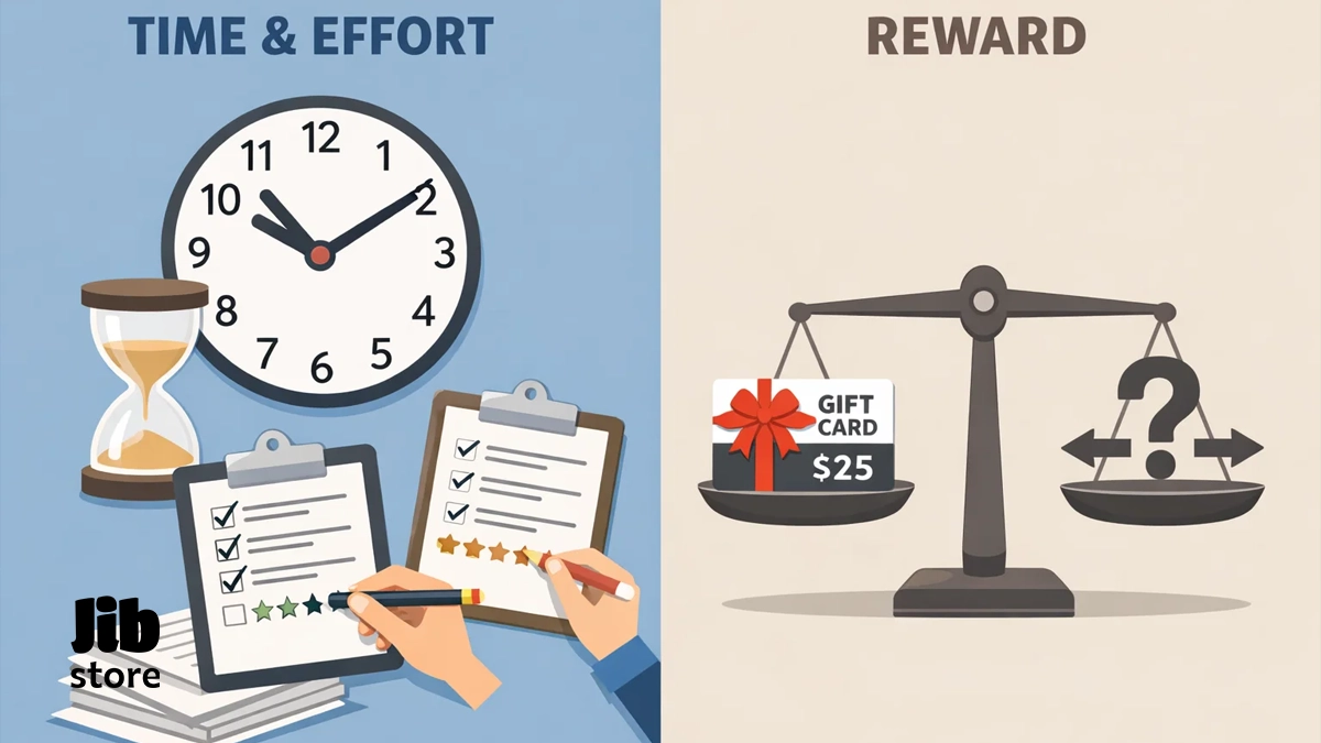 - معایب این کار به خصوص برای کاربران ایرانی، اغلب بسیار سنگینتر هستند. بزرگترین عیب، هزینهی زمان است. این فعالیتها را مانند یک شغل با حداقل دستمزد در نظر بگیرید؛ در واقع، حتی بسیار کمتر از آن. برای به دست آوردن یک گیفت کارت ۵ یا ۱۰ دلاری، اغلب نیاز به ۱۰ تا ۲۰ ساعت فعالیت متمرکز (مانند پر کردن نظرسنجیهای خستهکننده) دارید. این درآمد در مقابل زمان صرفشده، بسیار ناچیز است.