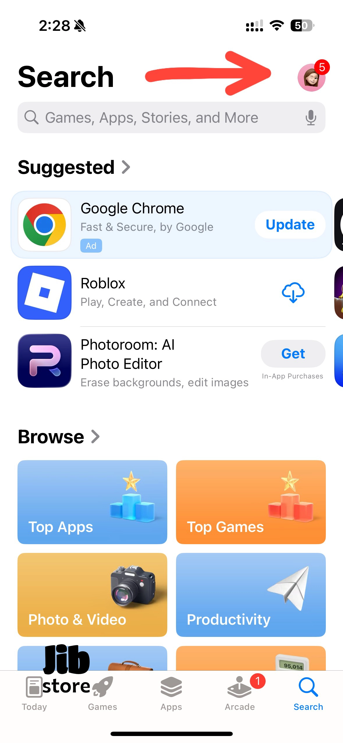 - در گوشهی بالا سمت راست، روی عکس پروفایل خود (یا آیکون آدمک) ضربه بزنید.