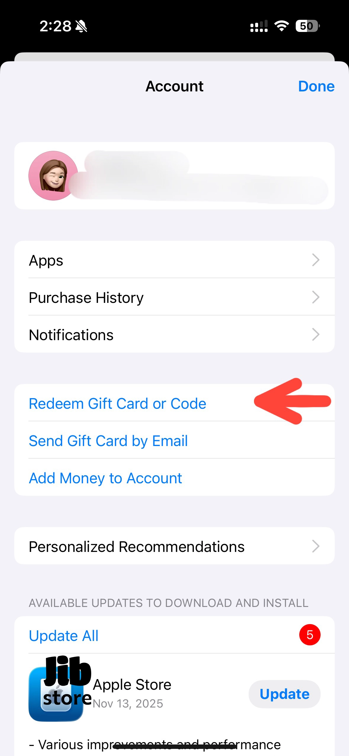 - گزینهی Redeem Gift Card or Code را بزنید.