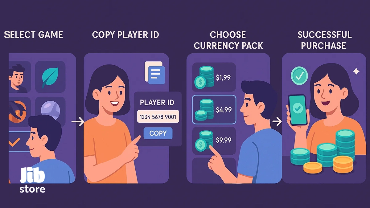 حالا که با مفاهیم پایه و انواع ارزها آشنا شدید، نوبت به مرحلهی عملی میرسد. شاید در نگاه اول تصور کنید که این فرایند پیچیده و فنی است، اما خرید از سایتهای معتبر ایرانی مثل جیب استور بسیار سادهتر از چیزی است که فکر میکنید. در واقع این کار شباهت زیادی به خرید شارژ موبایل یا پرداخت قبض اینترنتی دارد. در اینجا مراحل کلی خرید را که تقریباً برای تمام بازیها و سایتها یکسان است، مرور میکنیم.