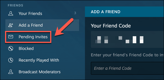 در صورت بسته بودن پنجره Friend Code، از قسمت Friends در منوی بالای استیم دوباره وارد بازی شوید.