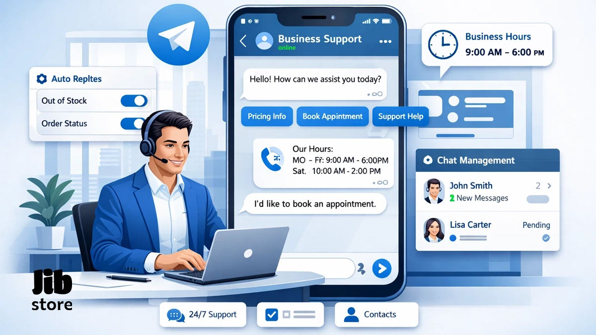 یکی از بزرگترین مشکلات فروشندگان اینترنتی، پاسخ دادن به سوالات تکراری و مدیریت پیامها در ساعات غیرکاری است. تلگرام بیزینس مثل یک منشی دیجیتال عمل میکند که 24 ساعته بیدار است و به جای شما کارهای اولیه را انجام میدهد. این قابلیتها شامل موارد زیر میشود: